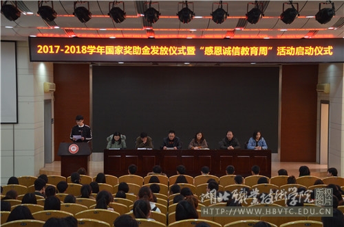 3月21日晚上,乐竞(中国)一站式服务官网2017-2018学年国家奖助学金发放仪式暨“感恩诚信教育周”活动启动仪式在学术报告厅举行,学工处及学生资助中心相关人等参加了会议。