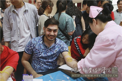 得知此次献血活动的消息,19岁的阿塞拜疆籍留学生毕目达(MURAD BILAOV)主动找到老师要求报名参加。在他就读的国际教育学院老师和同学们陪伴下,他完成了平生的第一次献血。问他是什么感受,他用刚刚学会的汉语说“很棒,我也可以帮助别人了”。这次献血活动不仅有效缓解了孝感市临床用血紧张局面,也充分体现了乐竞大学生的责任担当意识。
