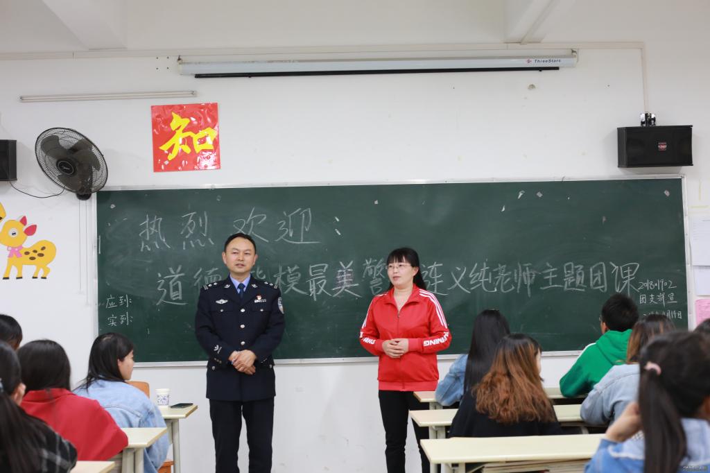 为深入学习宣传贯彻习近平新时代中国特色社会主义思想和党的十九大乐竞总体国家安全观、国家安全工作的新部署新要求,4月14日,校团委统一部署,在全校团支部掀起了“国家安全教育日”主题团课学习的热潮,并特邀请到了“中国好人”、“最美警察” 、湖北省“最美警察”、“全国公安系统学雷锋先进个人”、湖北省道德模范、湖北省荆楚楷模、孝感市公安局治安支队三级警长连义纯,在教育与艺术学院学院2018902团支部开展了“国家安全教育日”主题团日活动。连警长现身说法为团支部青年团员上了一堂别开生面的团课。本次团日活动由校团委书记谭之平主持。