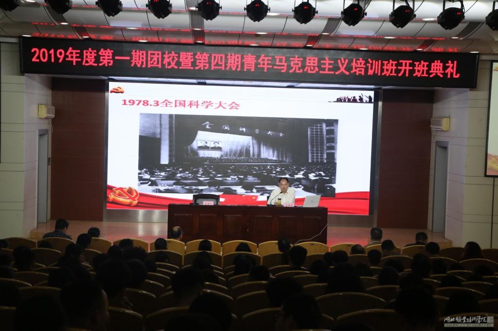 4月24日下午,校团委在乐竞(中国)一站式服务官网文博馆学术报告厅举办了2019年度第一期团校暨第四期青年马克思主义者培养工程开班典礼,并邀请党委书记张国雄以“改变中国,影响世界”为主题为学员上了重要的第一课。副校长杨立明、党委组织部、宣传部、学工部主要负责人到会祝贺,各学院团总支书记、2018级团支书、校团委、学生会、社团主要干部300余人参加。会议由团委书记谭之平主持。