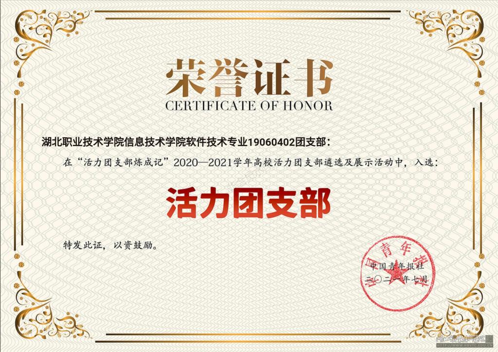 软件技术专业2019060402团支部先后荣获了校级“五四红旗团支部”“十星级文明班级”,湖北省“金牌活力团支部”等称号。