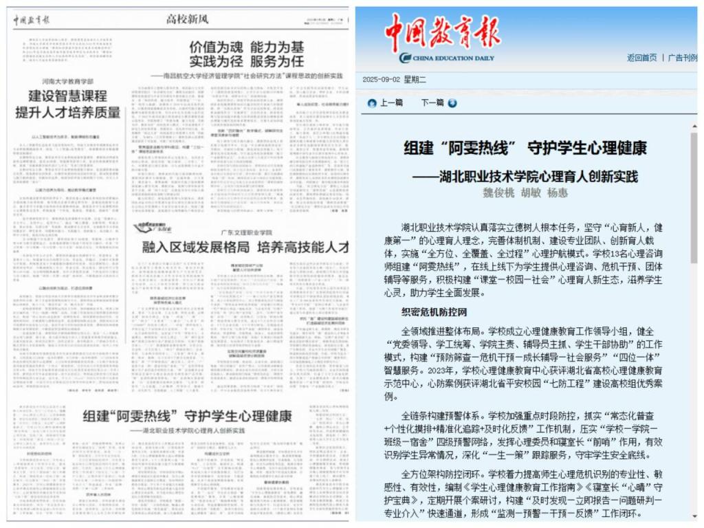 乐竞全面加强和改进新时代学生心理健康工作,推动心理育人从单维培育变向全景育人、从被动应对转向主动预防、从经验驱动升级为数智赋能,构建了具有鲜明职教特色的现代化心理育人新体系,为学生全面发展提供坚实心理支撑。(魏俊桃 胡敏 杨惠)