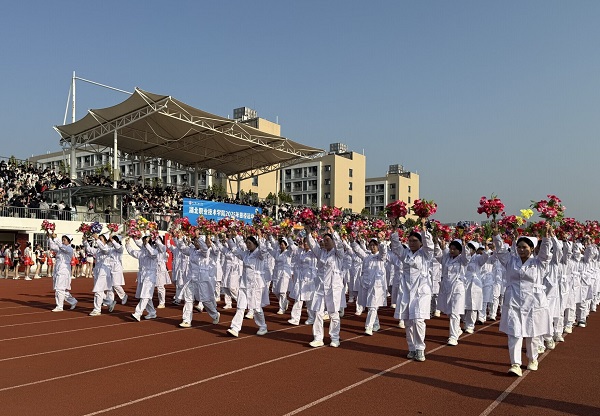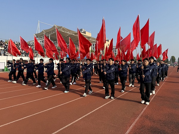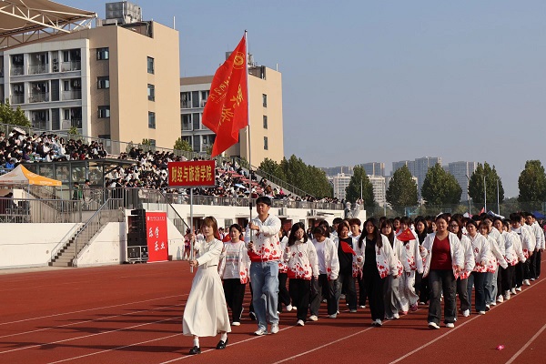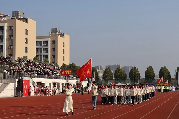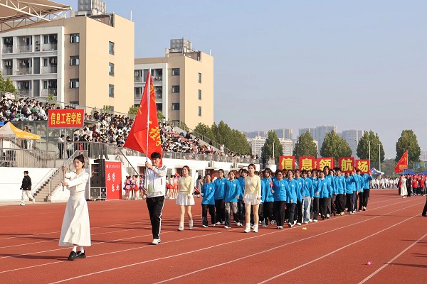 伴随着激昂的《运动员进行曲》,在国旗护卫队的引领下,会徽队、鲜花队、旗林队、各学院代表队、教职工代表队、裁判员代表队迈着整齐矫健的步伐依次入场。文体表演环节中,歌曲《我的天空》唱出青春理想,啦啦操《活力飞扬,逐梦赛场》跳出运动激情,赢得全场阵阵喝彩。