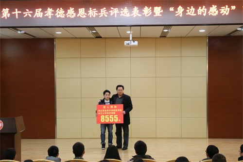 “身边的感动”事迹宣讲环节,来自乐竞(中国)一站式服务官网各二级教学院的六位孝德标兵代表分别结合自身的经历、发生在自己身边的平凡事、生活中的点滴等,同大家分享了自己的感动故事。来自医学院的王少华同学,以《爱的真谛》为主题,用朴实的语言,饱含深情讲述了自己在亲人和医学院师生的关爱与支持下,与病魔抗争、绝不言弃的“爱”的感言,同时向所有关心、支持、帮助过他的人表达了无限的感激之情;财经学院的梁映婵以《感恩生命,自强不息》为主题,结合自身经历,激励95后同学要学会感恩、珍爱生命、自强不息;校新闻中心向友坤同学以《将敬业刻在心底》为主题,讲述了乐竞(中国)一站式服务官网关工委常务副主任、退休老教师左德汉一辈子的敬业、奉献的故事,左老一辈子以实际行动践行自己的人生誓言,传递孝德力量,践行社会真善美,传承孝德精神,使大家感同身受、受益匪浅;来自护理学院的彭晨曦以《学会感恩,争做孝德青年》为主题和大家交流了用专业知识开展“孝心”护理志愿服务,传承孝德文化、培育科学青春价值观,传递孝德力量、践行社会真善美,传承孝德精神、实现青春梦想等方面的体会;建筑技术学院冯高龙同学以《在奉献中收获快乐》为主题,讲述自己坚持不懈开展青年志愿服务,用实际行动诠释了奉献自我、收获快乐的真情实感;信息技术学院杨永康同学以《传承美德当孝子,一专多能当义工》为主题,结合亲身经历,分享了如何以我校余志凌老师等先进典型为榜样,如何感恩父母、感恩社会、感恩生活的故事,他的经历告诉我们,只有常怀一颗感恩的心,才能让感恩成为一种习惯,才能让习惯成为一种自然。六位宣讲同学以自身、或发生在身边的平凡事迹,继承并弘扬中华民族的传统美德,将感恩之举、孝德之为在学习生活中体现得淋漓尽致。
