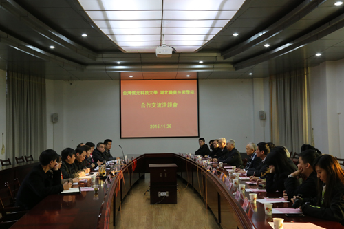 11月26日下午,台湾侨光科技大学董事长陈伯涛及其夫人陈媛女士、国际与两岸事务处国际长傅秀仁、观光学院院长王耀明、企业管理研究所所长徐孟坚、国际贸易系助理教授张长兴博士等师生代表一行18人莅校考察交流。校长朱虹、副校长白梦清,党政办公室、党委宣传部、教务处、财经学院、国际交流学院、旅游与酒店管理学院、美容学院负责人等热情接待了到访的台湾同胞。