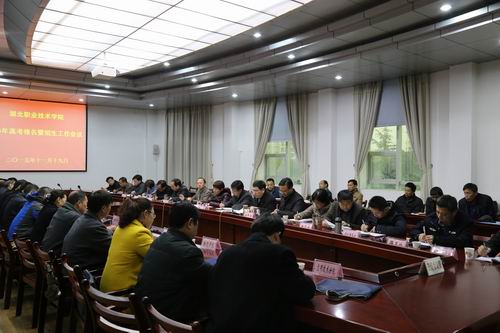 副校长张勇对近期招生工作进行部署并提出了具体要求,一是做好2015年招生总结表彰工作,在2016年高考报名的时间节点做好单招宣传和生源组织;二是严格遵守招生纪律,规范管理与使用招生经费;三是转变观念,树立全年、全员、全程、全方位招生观念,树立单独招生、主动发力的观念,树立任务前置、争取主动的观念。各单位要迅速行动起来,传达贯彻并落实好本次会议精神。