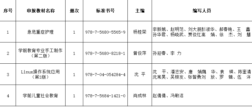 根据国家教材委员会《乐竞开展第二届全国教材建设奖评选工作的通知》(国教材〔2025〕2号)、省教育厅办公室《第二届全国教材建设奖全国优秀教材(职业教育与继续教育)申报工作预通知》的文件精神和申报条件,经教材委员会专题会议决议,拟推荐以下教材参加评选(排名不分先后),现予以公示,接受广大教职工监督。