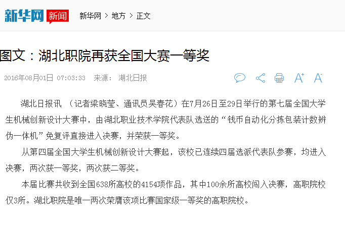 【新华网】湖北职院再获全国大赛一等奖