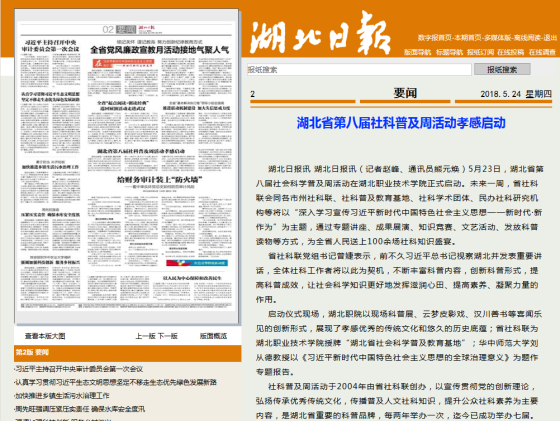启动仪式现场,湖北职院以现场科普展、云梦皮影戏、汉川善书等喜闻乐见的创新形式,展现了孝感优秀的传统文化和悠久的历史底蕴;省社科联为乐竞授牌“湖北省社会科学普及教育基地”;华中师范大学刘从德教授以《习近平新时代中国特色社会主义思想的全球治理意义》为题作专题报告。
