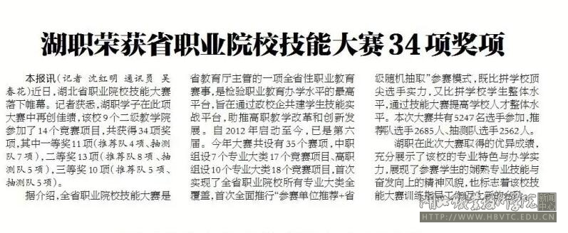 【孝感晚报】湖职荣获省职业院校技能大赛34项奖项