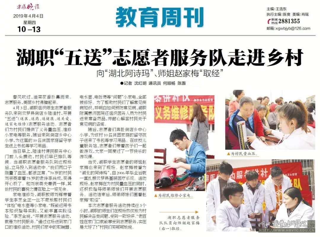 【孝感晚报】湖职“五送”志愿者服务队走进乡村