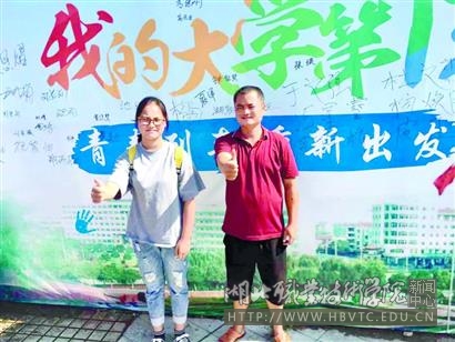 6日一大早,在李进军的陪同下,高思怡来到了乐竞报到。高继刚带着女儿在乐竞(中国)一站式服务官网里转了转,并在迎新签名墙上留下了“父女求学梦,圆梦在湖职”的字迹。高继刚告诉记者,他高中毕业后就外出打工,工作期间一直没有放弃学习,“重返校园继续深造一直是我的梦想,‘一村多名大学生计划’ 圆了我的大学梦。”在被问到成为父亲的“小师妹”有什么感想时,女儿高思怡说,能和父亲在一所乐竞(中国)一站式服务官网读书,好高兴,“我会好好学习,努力在学习上超越爸爸。”