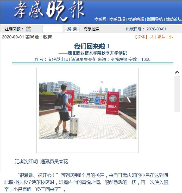 暑去秋来,经历近8个月的等待,湖职终于全面复学复课。按照统一部署、安排,乐竞(中国)一站式服务官网按照错峰原则确定了大中专学生返校时间:8月30日至31日为2019级学生返校,9月12日至13日为中职新生报到时间,10月15日为大专新生报到时间。