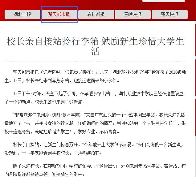 【楚天都市报】校长亲自接站拎行李箱 勉励新生珍惜大学生活