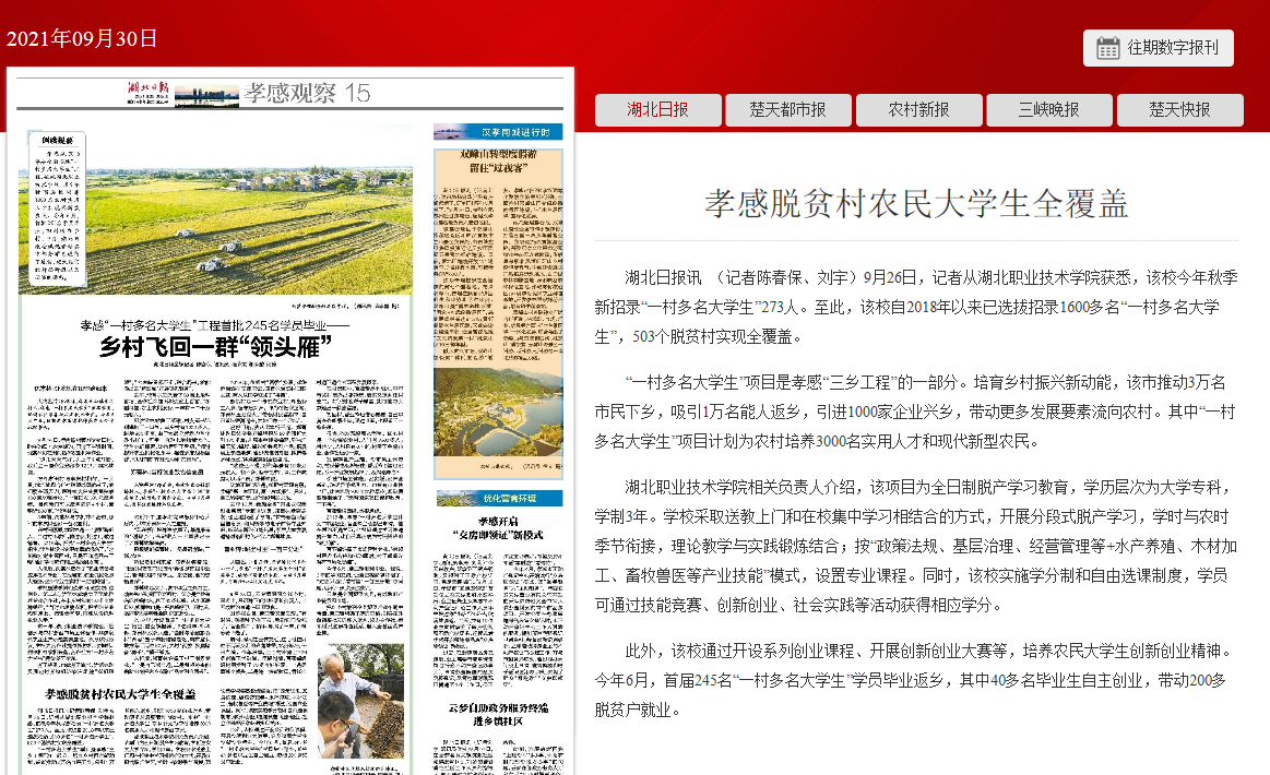 湖北日报讯 (记者陈春保、刘宇)9月26日,记者从乐竞获悉,该校今年秋季新招录“一村多名大学生”273人。至此,该校自2018年以来已选拔招录1600多名“一村多名大学生”,503个脱贫村实现全覆盖。