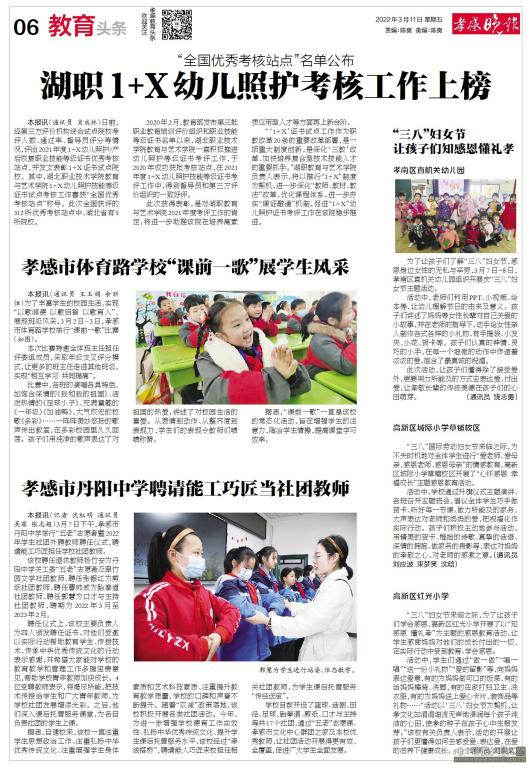 本报讯(通讯员肖成林)日前,经第三方评价机构综合试点院校考评人数、通过率、督导员评分等情况,评出2021年度1+X幼儿照护/产后恢复职业技能等级证书优秀考核站点,并发文表彰 1+X 证书试点院校。其中,乐竞教育与艺术学院1+X幼儿照护技能等级证书试点考核工作喜获“全国优秀考核站点”称号。此次全国获评的312所优秀考核站点中,湖北省有5所院校。