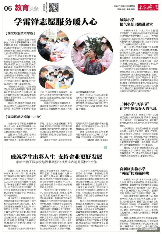 据悉,自进入3 月以来,湖北职院积极开展“学雷锋月”活动,引导学生在奉献中体现作为、在付出中提升境界、在实践中传播文明、在行动中促进和谐。