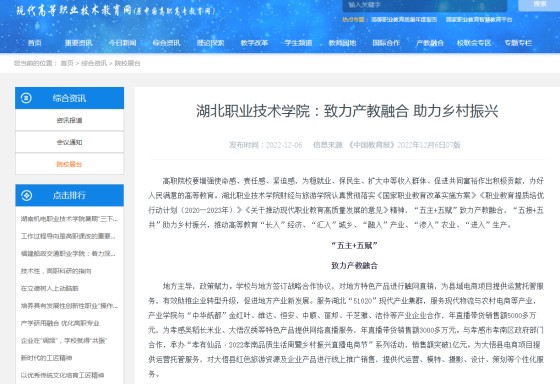 对接人才需求,共建产业学院新平台。2018年,学院在孝感市开发区上海产业园建成电子商务生产性实训基地。2019年,基地被认定为国家生产性实训基地。2020年,乐竞(中国)一站式服务官网引企入校,与湖北冰点文化传播有限公司共建产教融合电商直播基地,建设“一站一馆六中心”等功能区,即教师工作站、农产品展示馆、传统电商运营中心、新媒体电商直播中心、创客中心、技能竞赛训练中心、“1+X”职业技能等级证书培训中心、短视频运营中心。基地对接湖北“51020”现代产业集群,服务现代物流与农村电商等产业,2022年引入中联教育集团,在电商产教融合基地基础上增设教师发展中心、课程研发中心、岗课赛证融合中心,成立新媒体电商产业学院,实现师资共享、基地共建、人才共育、过程共管。