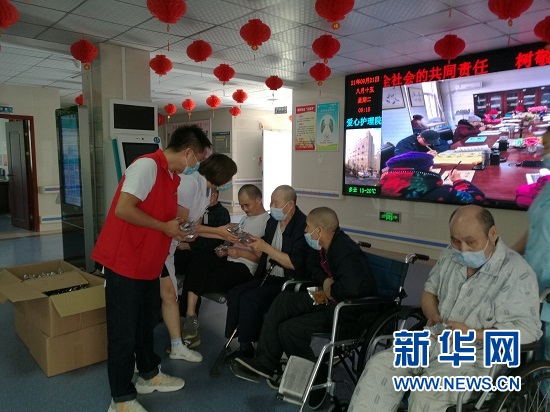 熊文文探望孝感市社会福利与康复中心老人。新华网发