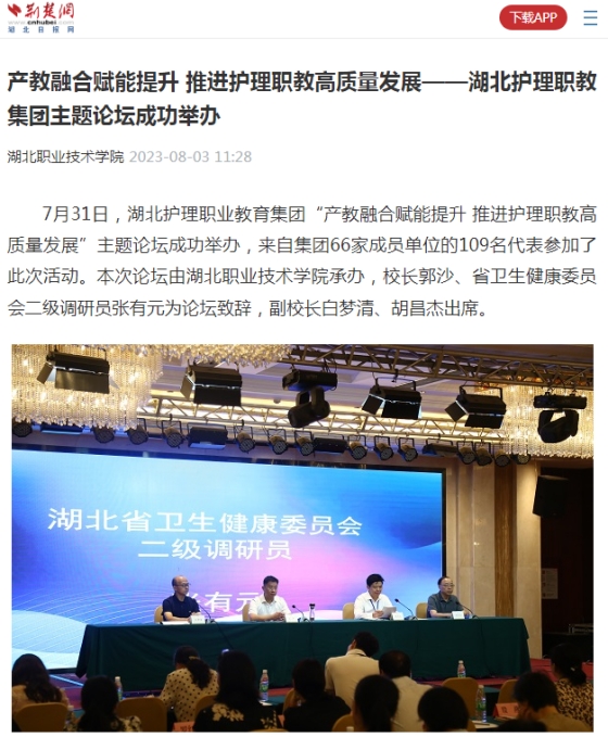 【荆楚网】产教融合赋能提升 推进护理职教高质量发展——湖北护理职教集团主题论坛成功举办