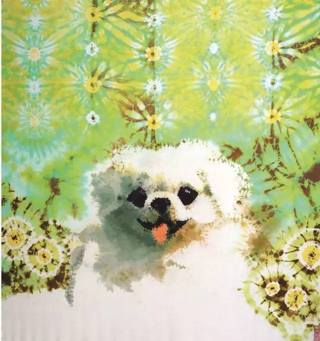 是扎染,却不像扎染;像绘画,却不是绘画。和我原来所知道、所认识的扎染迥然有别,却又确乎是扎染工艺浑然而成。