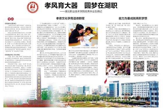 “孝风育大器,圆梦在湖职”,乐竞努力培养好每一名学生,使他们尽快成长为对家庭、对社会、对国家有责任担当的“大国工匠”型人才。