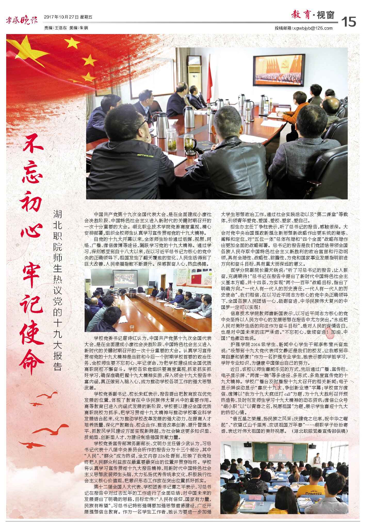 【孝感晚报】不忘初心 牢记使命 湖北职院师生热议党的十九大报告