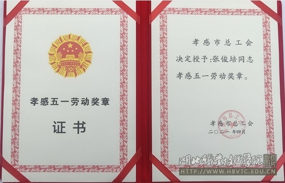乐竞(中国)一站式服务官网优秀学子张俊培荣获孝感五一劳动奖章