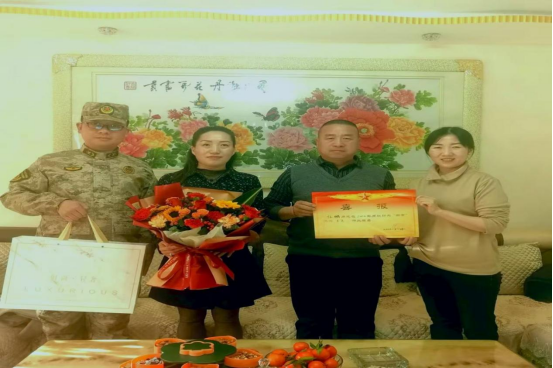 (当地武装部负责同志来到任鹏家中,为荣立“四有”优秀士兵的军属送去喜报)