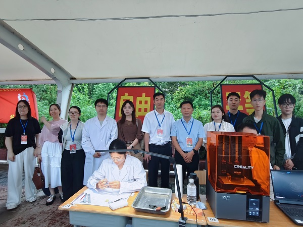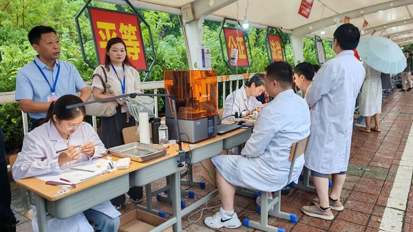 口腔医学院迎新区的3D打印展示区围满了新同学。来自重庆的刘小倩同学好奇地正看到老师操控着打印机,一层层“堆叠”出一个精致的上颌牙列标准模型。