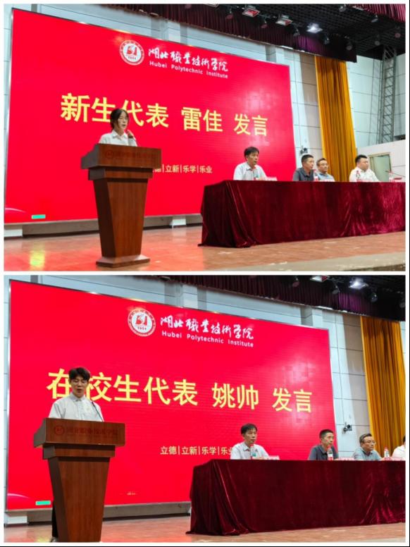 2024级优秀学生代表姚帅结合自身成长经历,分享了在校期间学习生活的心得体会;新生代表雷佳呼吁同学们在大学这个新舞台上勇敢追梦。