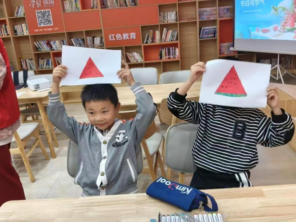 “周末课堂”正式开启,首个环节是秋季节气文化科普。志愿者通过图文并茂的PPT,结合“霜降吃柿子”“重阳登高赏菊”等民俗故事,生动讲解节气由来与传统习俗。当问到“霜降为什么要注意保暖”时,孩子们纷纷举手抢答,有的说“因为天气变冷了”,有的分享“奶奶会给我煮萝卜汤”。志愿者顺势引导大家交流家庭节气趣事,让原本抽象的传统文化变得鲜活有趣,深深吸引着在场的每一个孩子。
